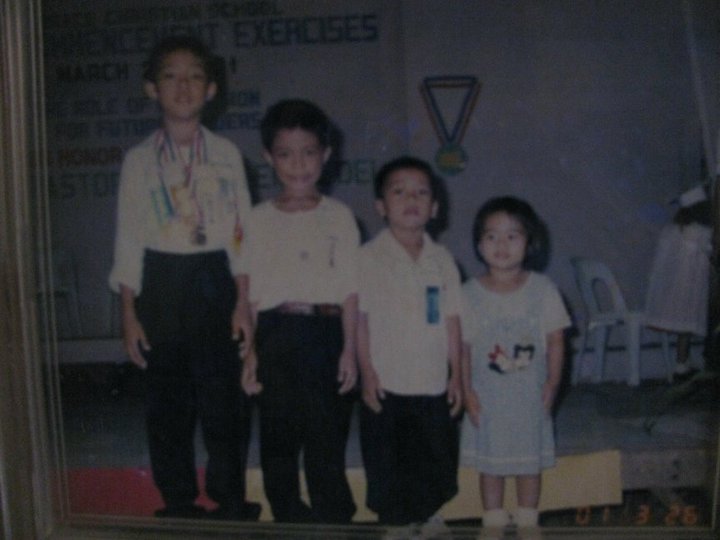 Do Re Mi Fa. I am the eldest and the tallest that time, and these are my siblings, arranged by height and accordingly with age(left-right). I think I was in Grade 4, my brother Kevin was grade 2, Kamil was still on Preschool and as well as our youngest, only girl, Krislyn.