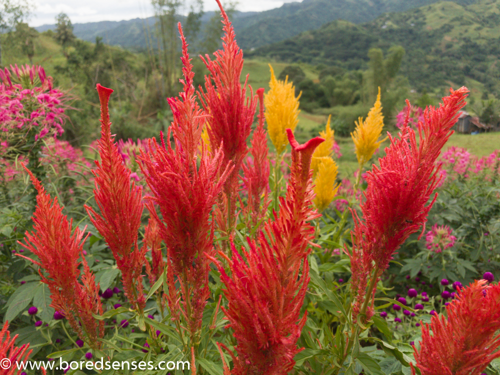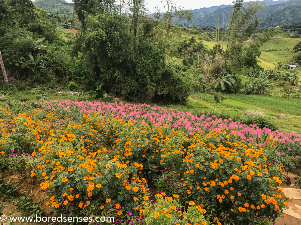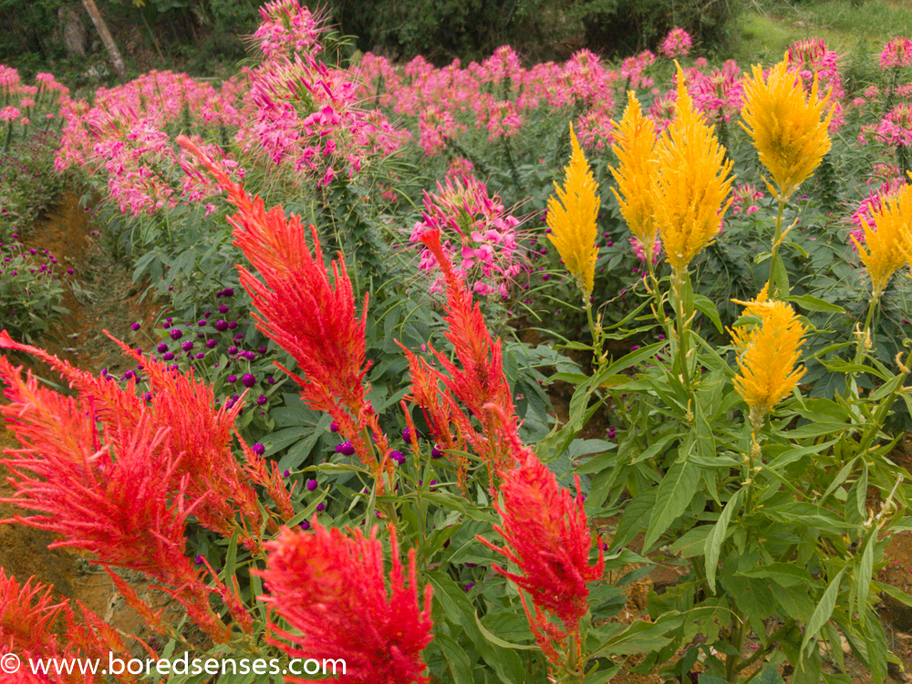 I don't know the flowers and I didn't write down the names, but I took some pictures. It's alluring in a way that it blends with the cool mountain air and a breathtaking view of the mountain areas.